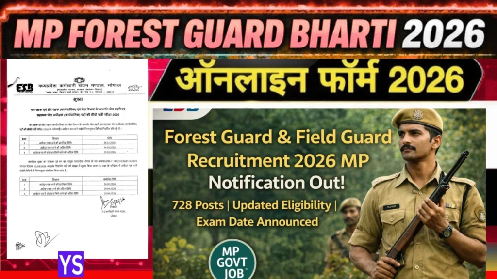 मध्य प्रदेश के उन युवाओं के लिए बड़ी खुशखबरी है MP Van Rakshak & Jail Prahari Vacancy 2026: 1679 पदों पर भर्ती का ताज़ा अपडेट जो सरकारी नौकरी का इंतज़ार कर रहे हैं। MPESB (Madhya Pradesh Employees Selection Board) ने वर्ष 2026 के लिए वन रक्षक (Van Rakshak) और जेल प्रहरी (Jail Prahari) के 1679 पदों पर भर्ती की तैयारी शुरू कर दी है। इस लेख में हम आपको योग्यता, आयु सीमा, आवेदन प्रक्रिया और परीक्षा पैटर्न की पूरी जानकारी विस्तार से देंगे।